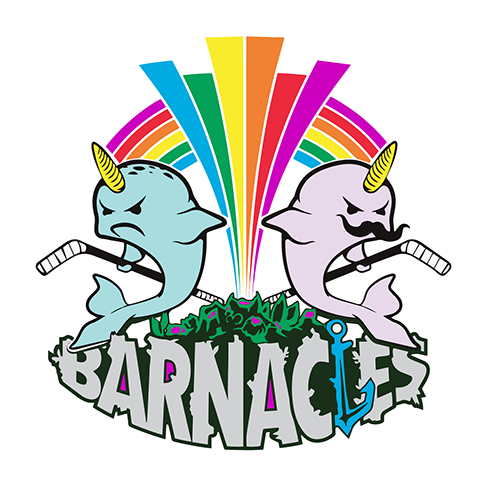 Well bless my Barnacles! After many fun, colorful discussions with this local hockey team, we decided nothing struck more fear into an opponent's heart than defeat by rainbows and adorable sea mammals.