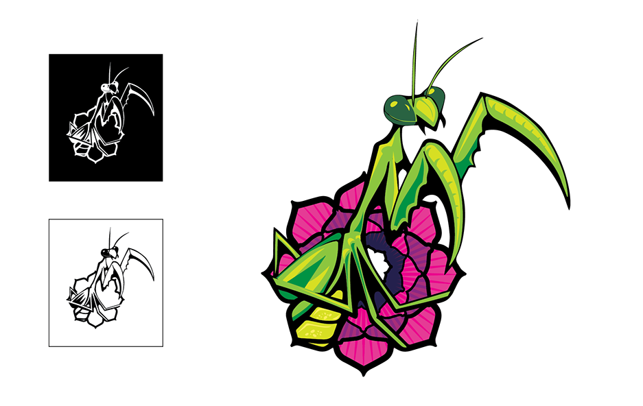 The Black Lotus Kung Fu Archive is a conceptual digital repository for martial arts education. The owner wished to feature both an abstract interpretation of a lotus as well as a Praying Mantis symbolizing one of the many forms incorporated into the art form.