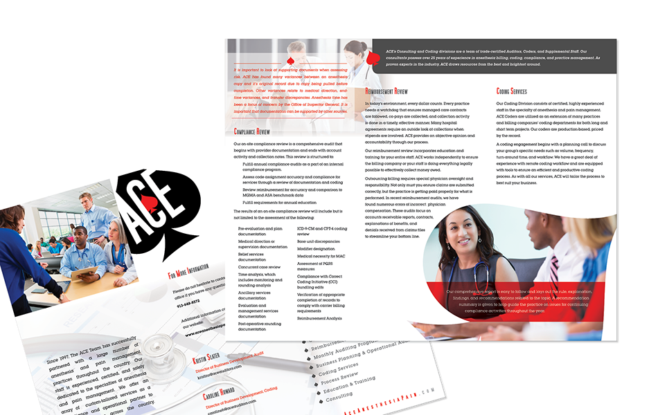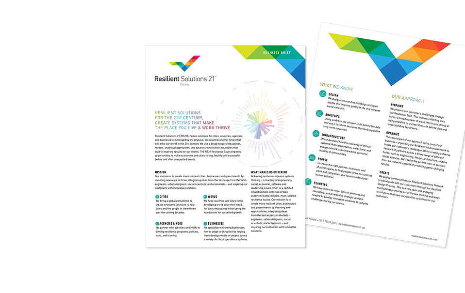 Full rebrand collateral design for promotional pamphlets, letterhead, business cards, and logo redesign.