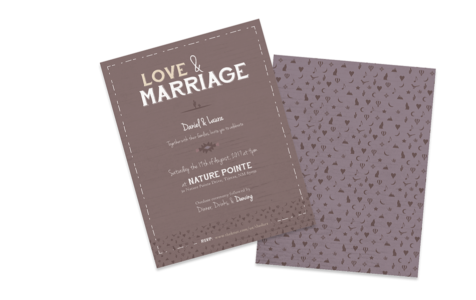 Wedding invitation design that incorporated a custom pattern of local iconography picked by the couple.