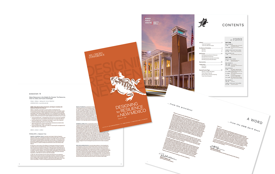 Event itinerary and conference agenda for a 3-day seminar through AIA New Mexico.
