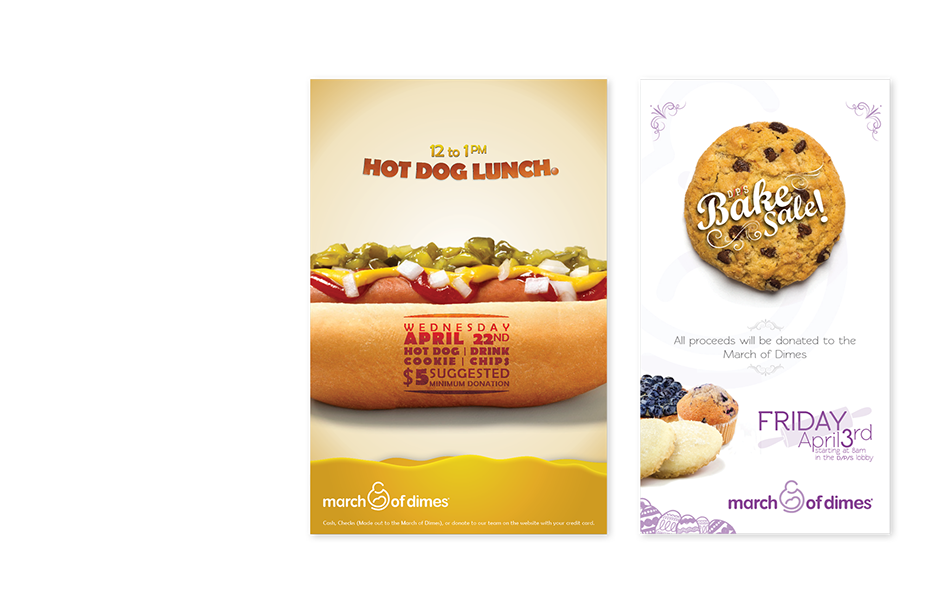 Promotional event collateral donated to the March of Dimes non-profit agency for fundraising.